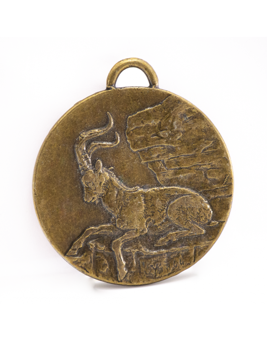 Medalla de homologación para trofeo de macho montés. El pack incluye medalla, cinta con bandera de España para colgarla y tarjeta para rellenar los datos del trofeo con pegatina para poder pegarla en la cara posterior de la peana del trofeo. Disponible en las tres opciones de homologación: oro, plata y bronce.