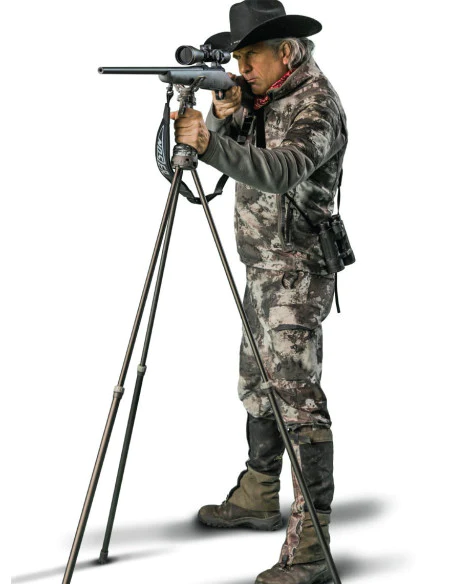 El bastón Primos Trigger Stick Gen 3 se ajusta a la altura deseada manejándolo con una sola mano y con solo apretar un gatillo. Su sistema de fijación rápida con bloqueo integrado, hace que sea más fácil que nunca cambiar la altura del apoyo de forma rápida y precisa. Posee un sistema de rotación suave que ayuda a girar y buscar el objetivo. Puede usarse de pie, sentado o arrodillado.