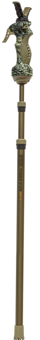El bastón Primos Trigger Stick Gen 3 se ajusta a la altura deseada manejándolo con una sola mano y con solo apretar un gatillo. Su sistema de fijación rápida con bloqueo integrado, hace que sea más fácil que nunca cambiar la altura del apoyo de forma rápida y precisa. Posee un sistema de rotación suave que ayuda a girar y buscar el objetivo. Puede usarse de pie, sentado o arrodillado.