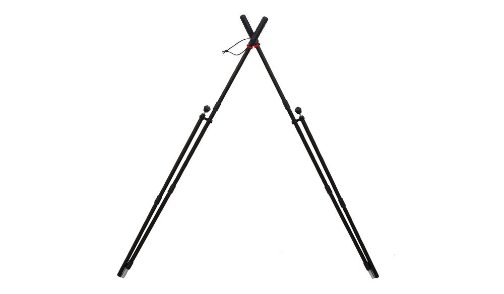 Esto ajusta la plataforma a una altura más baja y mantiene las secciones de las patas dobladas, seguras y fuera del camino durante el transporte. Mejora la precisión del tirador. Tubos de aluminio duradero de 9/16 «de diámetro. La correa elástica mantiene las barras colapsadas unidas y ajustadas. Innovador clip de retención de la sección de la patas que permite al tirador bajar la altura de disparo.