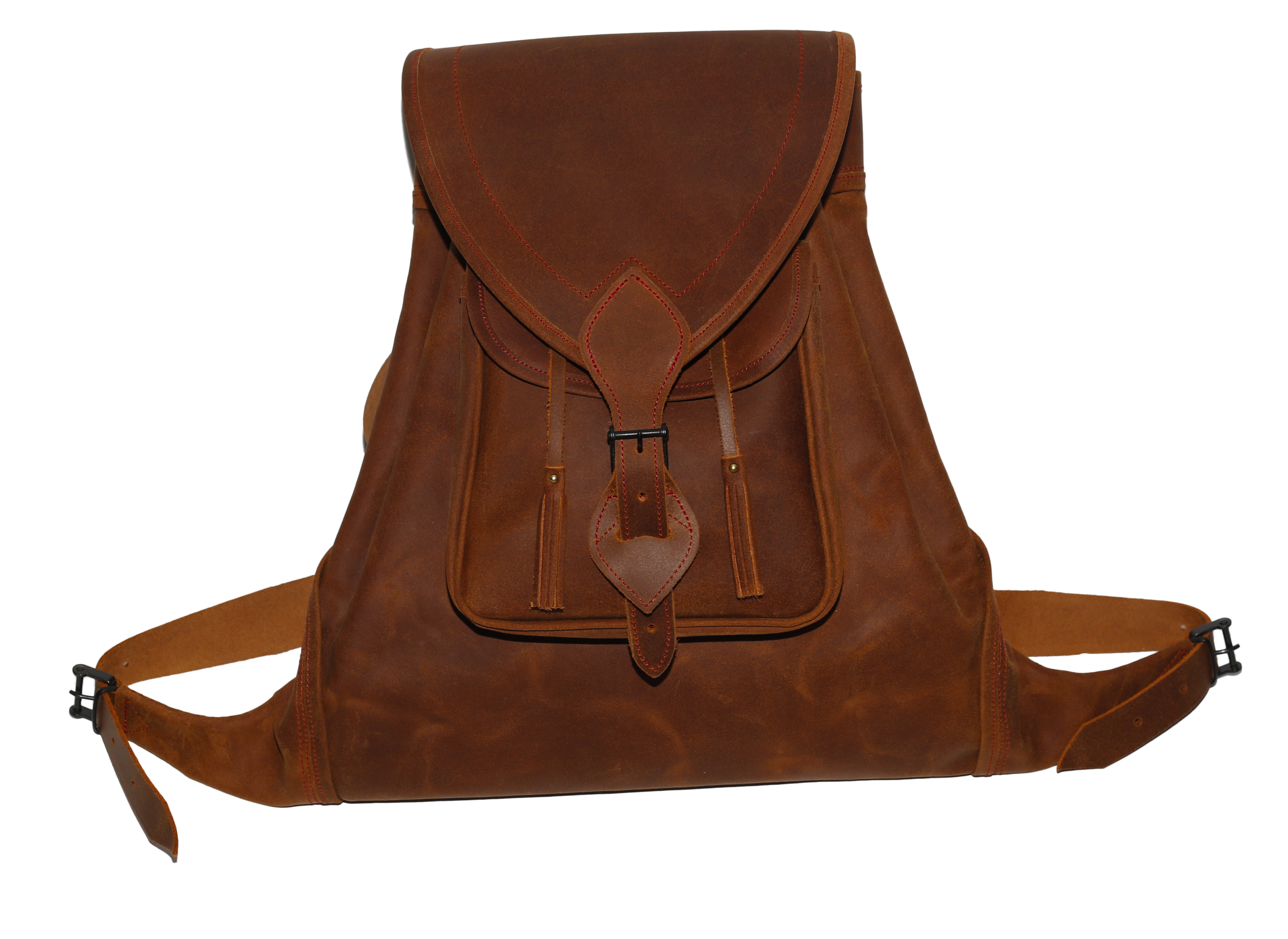 Zurrón Cuero Engrasado Coñac C/Bolsillo Exterior