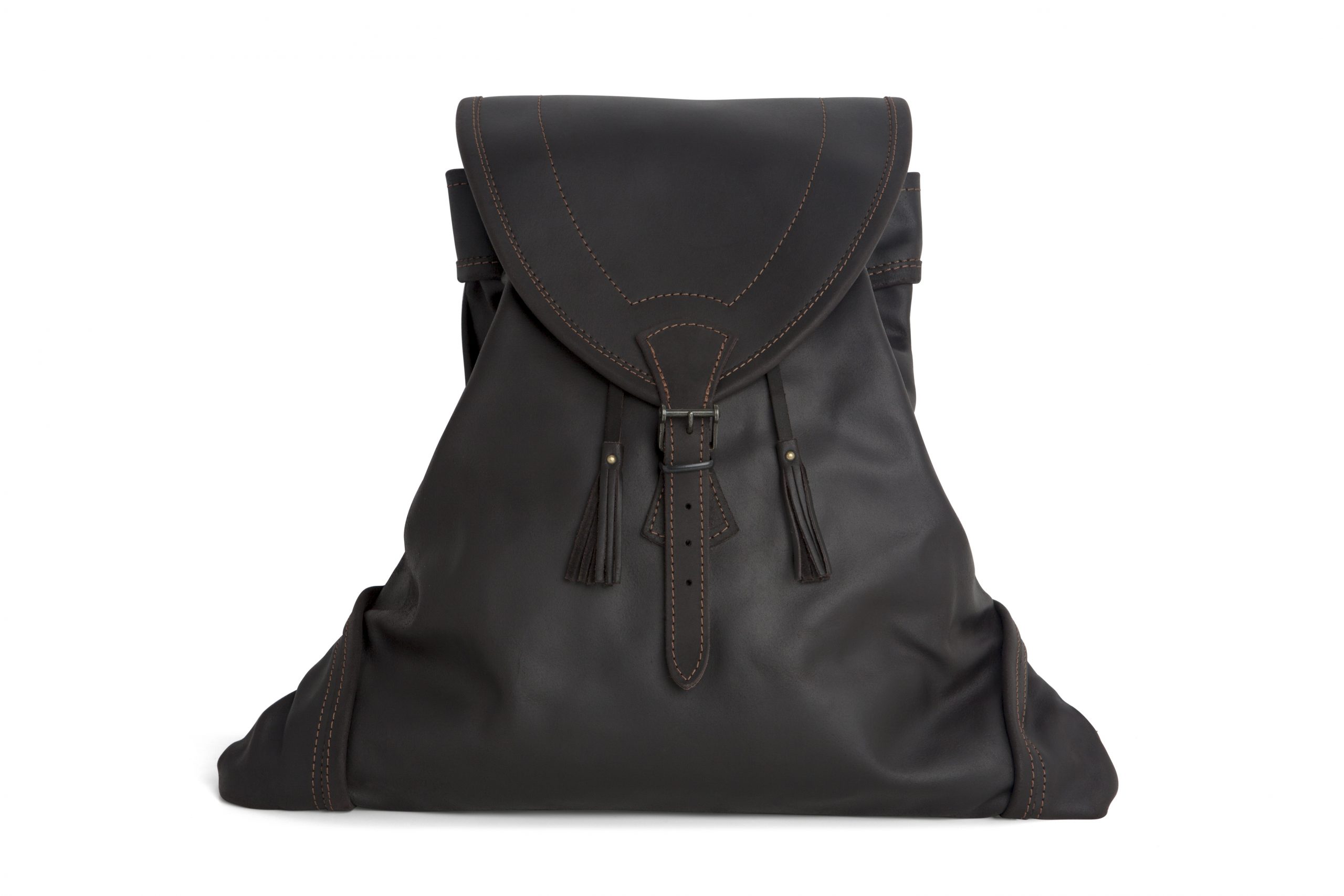 Zurrón de un bolsillo (interior) en piel cuero engrasado oscuro de gran calidad.