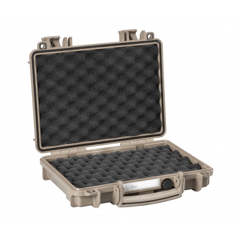 Maletín de gran resistencia para arma corta, con espuma corrugada en el interior. En colo tierra.