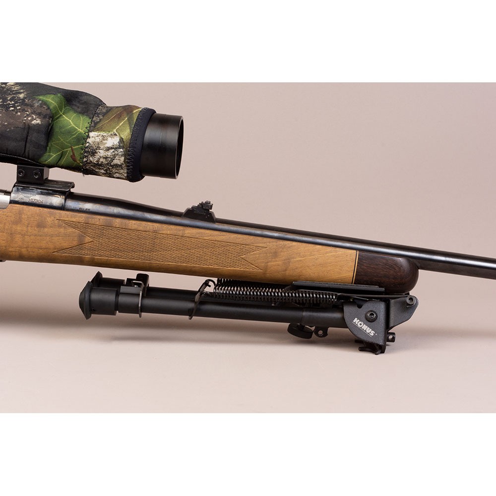 - 2 tipos de anclaje: al tornillo de la correa o a carril Weaver-picatinny por medio del adaptador. Si tenemos tornillo de correa, el bípode se coloca directamente. Si en vez de tornillo de correa tenemos un carril Weaver-picatinny, colocamos el adaptador al carril para tener así un enganche de correa al que fijar el bípode.