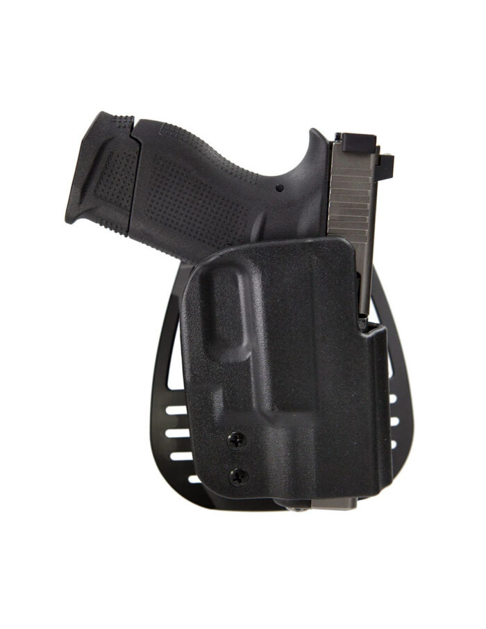 La funda de UNCLE MIKE’S Kydex Paddle con retención interna es una brillante combinación de fuerza y doble retención. Construida con los mismos sistemas de retención que las fundas de servicio de doble retención Pro-2, esta funda además, adopta medidas adicionales de seguridad a la hora de soltarla alineando su dedo a lo largo del borde del arma, siendo mejor que si tenemos el dedo en el disparador, previniendo de disparos accidentales. Una buena elección para operaciones de incógnito o paisano.