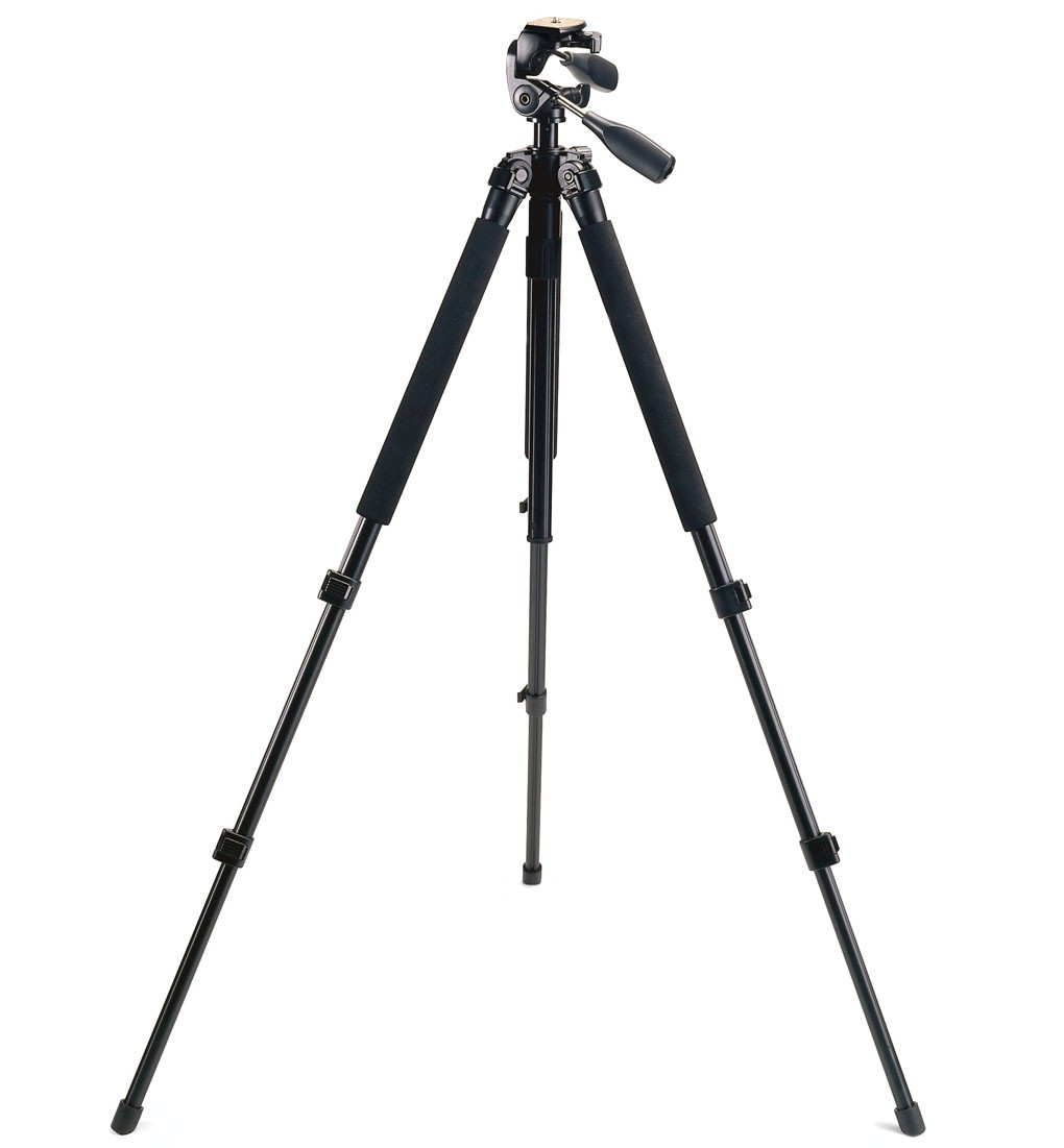 Nuestro modelo de titanio presenta tres posiciones de ajuste del ángulo de apertura de las patas, una cabeza panorámica tridireccional, dos mandos panorámicos y basculantes y una columna central reversible sin engranaje. Lo mejor en trípodes por su calidad Bushnell® y su peso razonable.