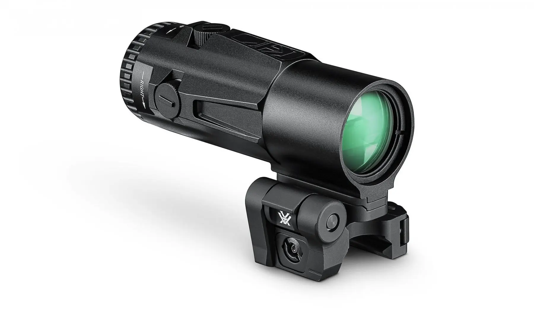 Los magnificadores son un tipo de óptica que se fija sobre el arma y que generalmente cuenta con una montura abatible que permite emplearlos o prescindir de ellos en cada situación, cosa que este nuevo Vortex Micro 6X incluye. Además incluye una base Quick Release para poder también, además de abatirlo hacia un lado, ponerlo o quitarlo del arma rápidamente.