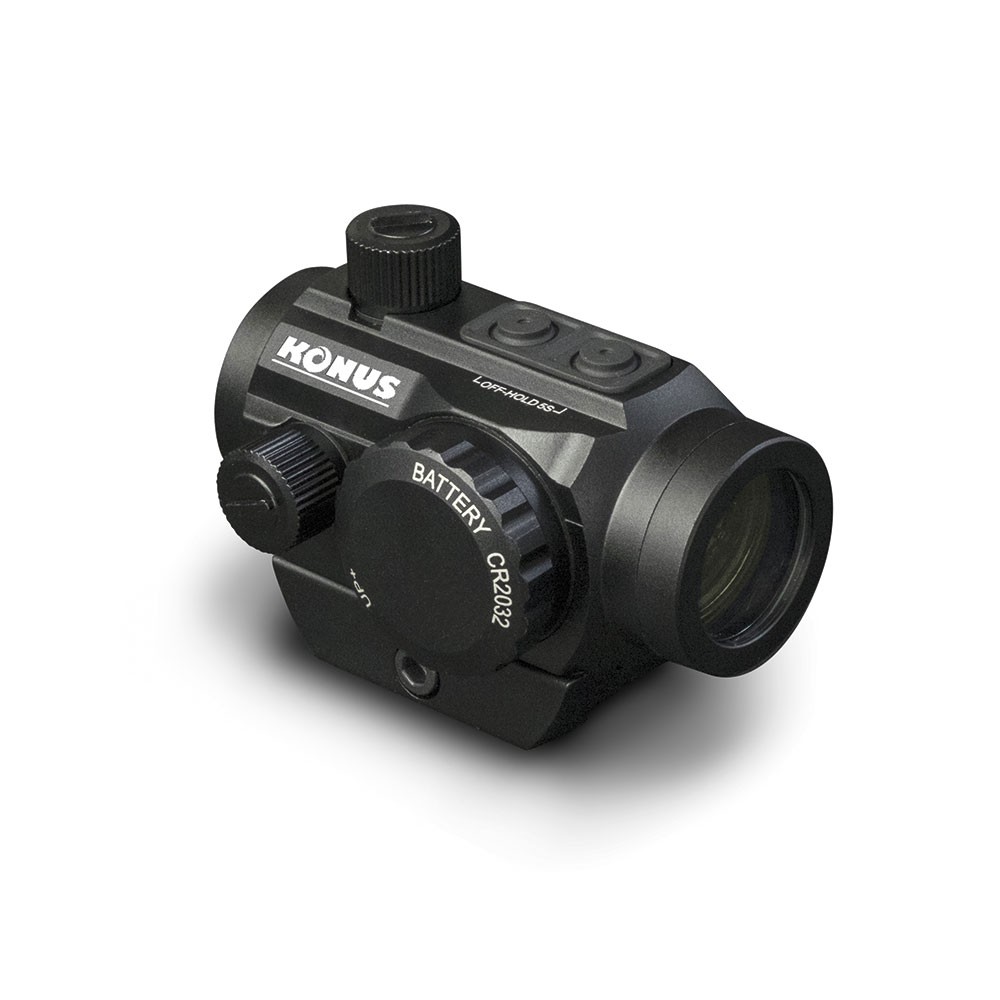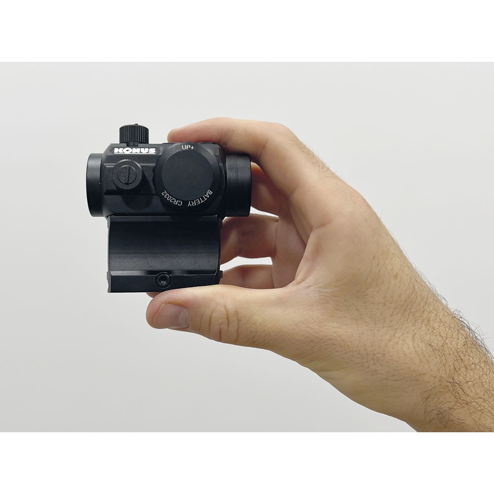El punto rojo Konus Nuclear 1×22 incorpora un sistema de montaje dual que permite obtener una altura mayor en el carril de su arma.
