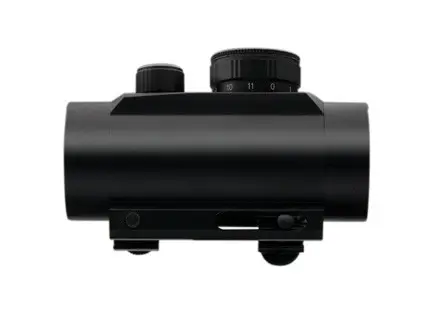 PUNTO ROJO NIKKO STIRLING RD30 montado sobre una base adaptable a CARRILES DE 11MM de ancho. Visor táctico montado sobre un tubo de 30mm de diámetro con la retícula de punto rojo iluminado para favorecer el encare y tiro rápido.
