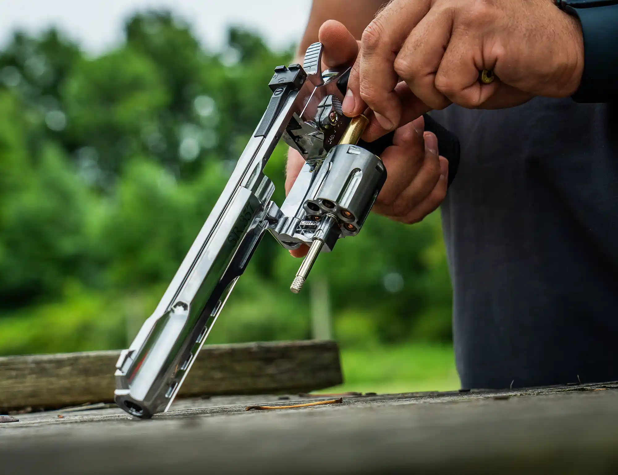 Revólver Crosman SR 357 Black de aire comprimido en calibre 4,5 mm que funciona con bombonas de CO2 de 12 gramos. Revólver full metal con juego de 6 vainas donde colocaremos las BB’s de acero. Velocidad de salida: 137 m/s