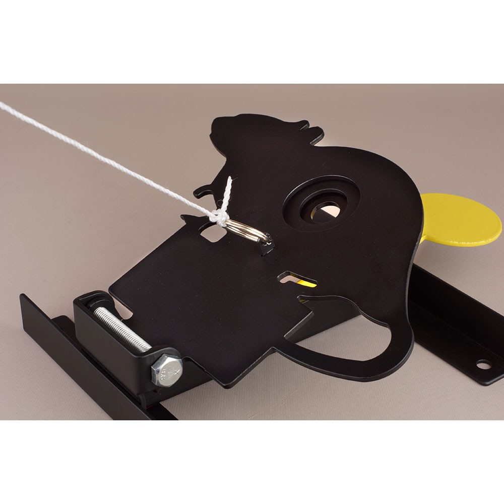 - Si consigue dar al blanco, la figura caerá tumbada. Podrá volver a ponerla en la posición inicial estirando del cordel (incluido).