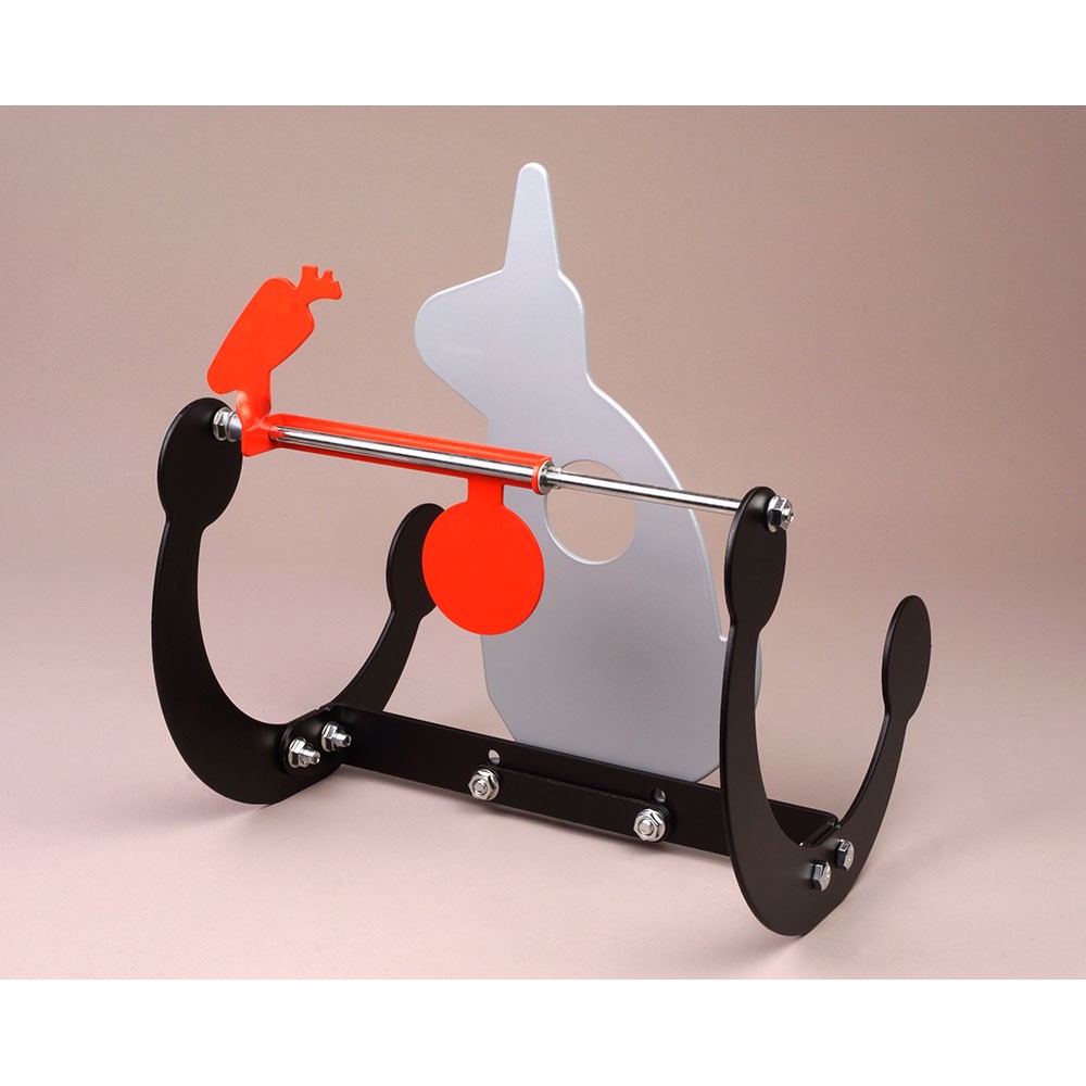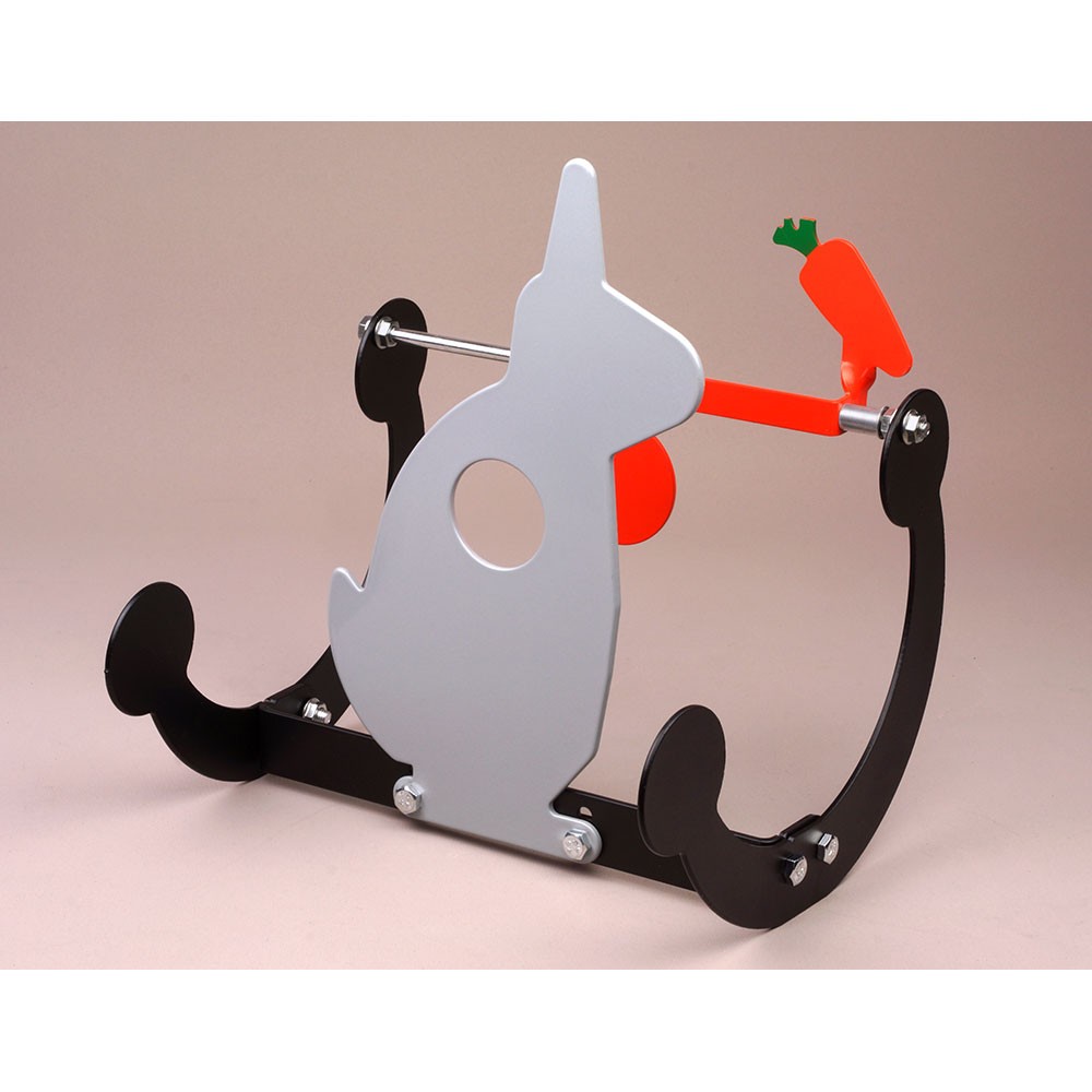 - El motivo con forma de zanahoria gira cuando se acerta al blanco central. Si se da en cualquier otra zona de la diana, esta oscilará y volverá a quedar en posición vertical.