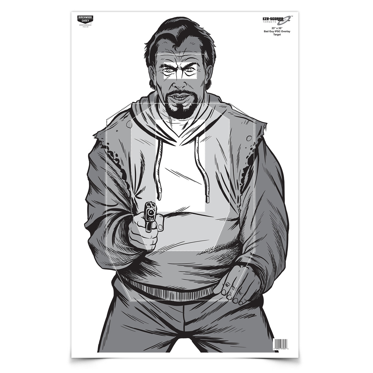 PERFECTO PARA TODAS LAS ARMAS DE FUEGO Y CALIBRES.LOS BLANCOS DE PAPEL HAN SIDO Y SERÁN, UN ELEMENTO FIJO EN NUESTRA EXPERIENCIA DE TIRO COLECTIVO. LOS OBJETIVOS EZE-SCORER™ LLEVAN EL CLÁSICO OBJETIVO DE PAPEL A LA ERA MODERNA CON NUEVOS DISEÑOS, MEJORES HERRAMIENTAS DE ENTRENAMIENTO Y UN VALOR EXCEPCIONAL. CONSTRUCCIÓN DE PAPEL RESISTENTE IMPRESA EN EE. UU. SOBRE PAPEL BLANCO BRILLANTE.37034 – EZE-SCORER™23 X 35 BAD GUY IPSC OVERLAY, 100 OBJETIVOS