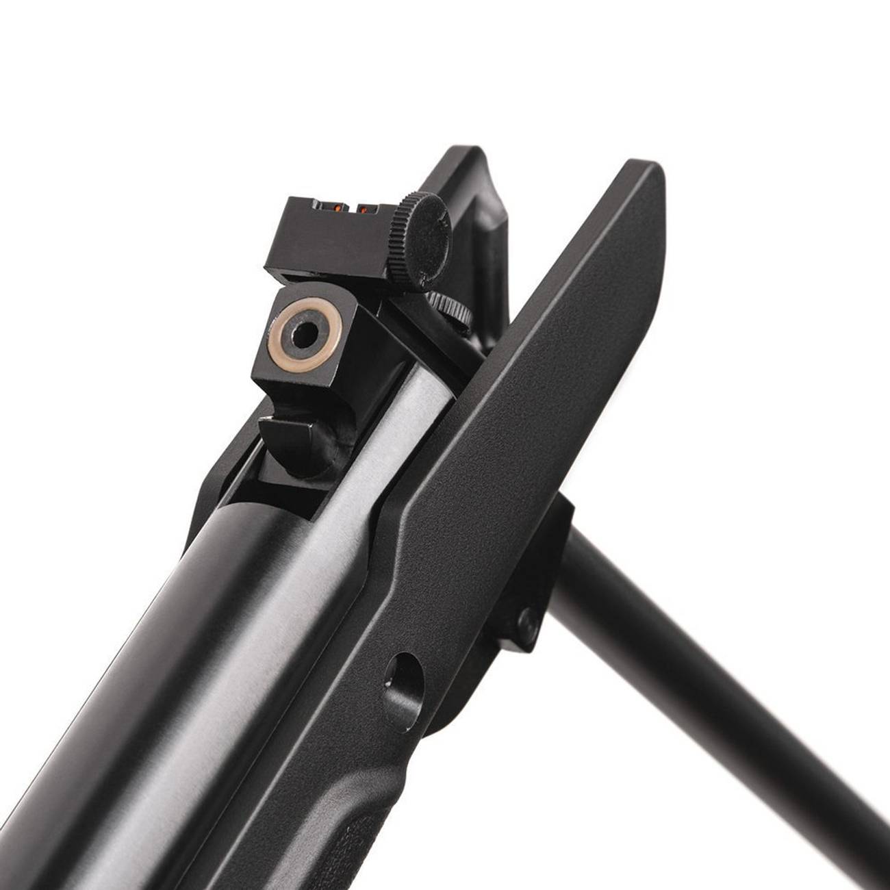 Este modelo cuenta con una culata sintética de alta resistencia, con diseño ergonómico y un orificio para el pulgar que mejora el agarre y la comodidad. Su sistema de miras abiertas ajustables, junto con el cañón de acero estriado, garantiza una precisión superior. Además, incluye un carril de 11 mm tipo Cola de Milano, permitiendo la instalación de visores ópticos para mejorar la puntería.