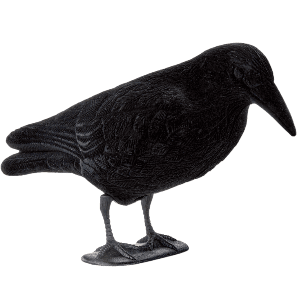 Cuerpo completo para la caza exitosa de cuervos,graajs y urracas. El éxito de la caza aumenta significativamente con estos cuervos señuelos en bandada. Gracias al fino y profundo flocado negro, los cuervos que atraen se ven mucho más realistas. Con el soporte desmontable y la punta de tierra incluida, puede diseñar la imagen de atracción de manera muy variable, lo que aumenta aún más la atracción de los cuervos. Puede quitar los soportes de algunos de los cuervos que atraen y unir la espiga del suelo a una de las 2 aberturas del cuervo en bandada según sea necesario e imitarlo cuando se alimenta, etc. Debes usar al menos 5 – 10 de los cuervos para tu señuelo, aunque aquí también, cuantos más señuelos uses, mayor será el atractivo.