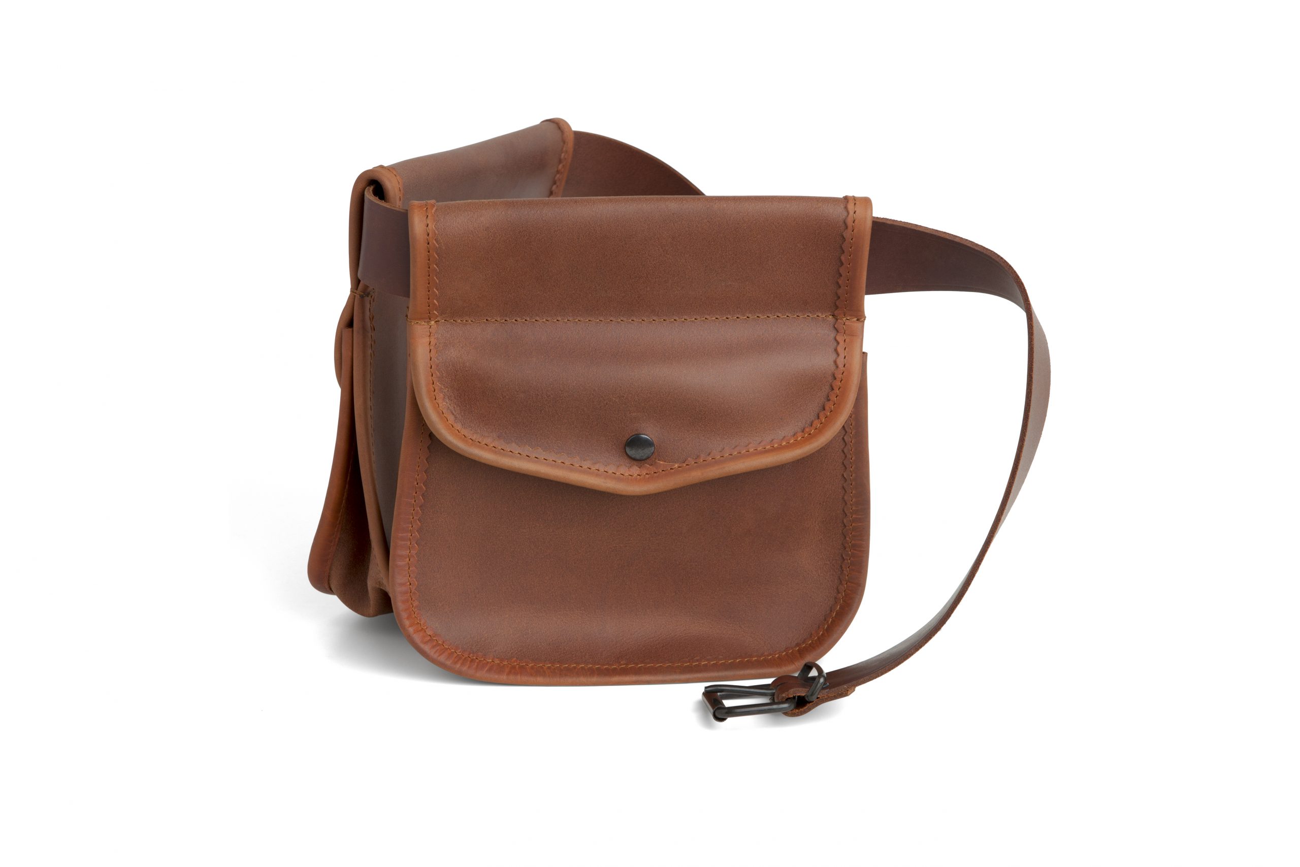 Bolsas para ojeo en piel ternera natural de máxima calidad, con cinturón ajustable y capacidad para varias cajas de cartuchos por bolsa.