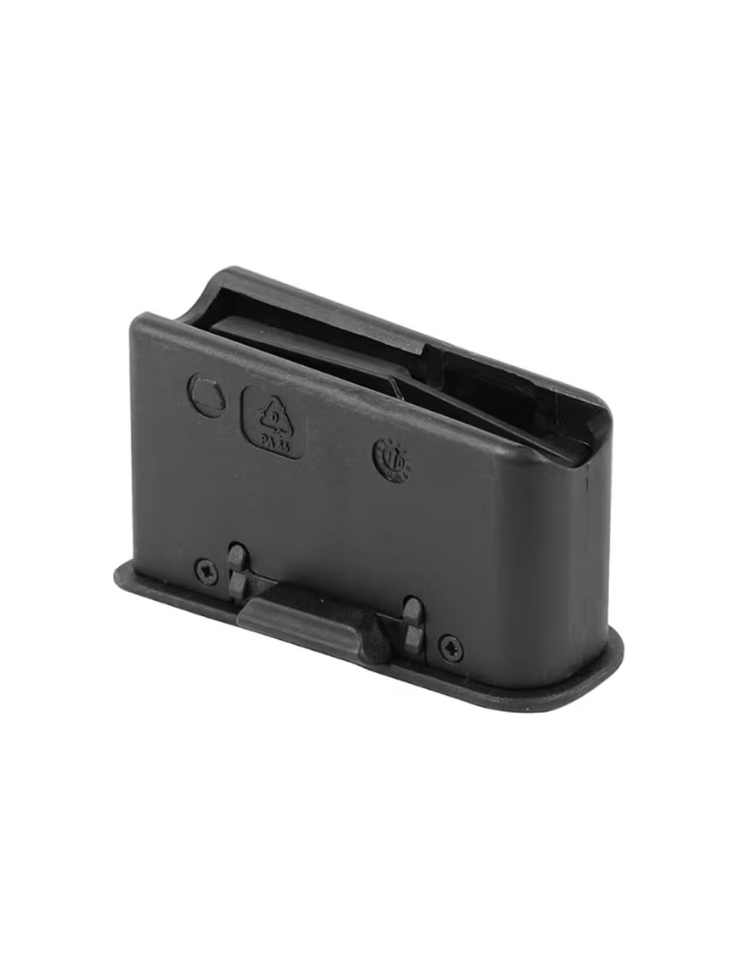 Cargador de 4 balas para los modelos Steyr Pro Hunter, Classic, CLII y SM12 en calibres 270 WSM y 300 WSM. Fabricado con un polímero resistente de color negro mate, con una placa base sintética y un resorte de acero inoxidable, el cargador ofrece una alimentación compacta de doble hilera.
