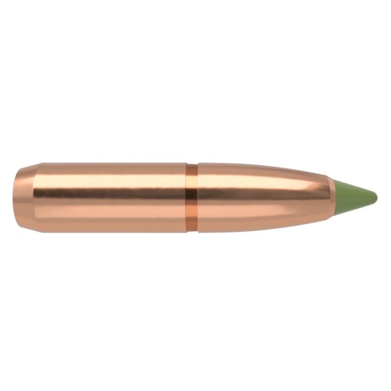 Al impactar, la exclusiva cavidad E² Cavity (Energy Expansion Cavity) de Nosler permite una expansión inmediata y uniforme, reteniendo el 95% del peso para una penetración mejorada. La configuración de cola de bote de la bala, junto con la punta de polímero aerodinámica, asegura un rendimiento a larga distancia y facilita la recarga.