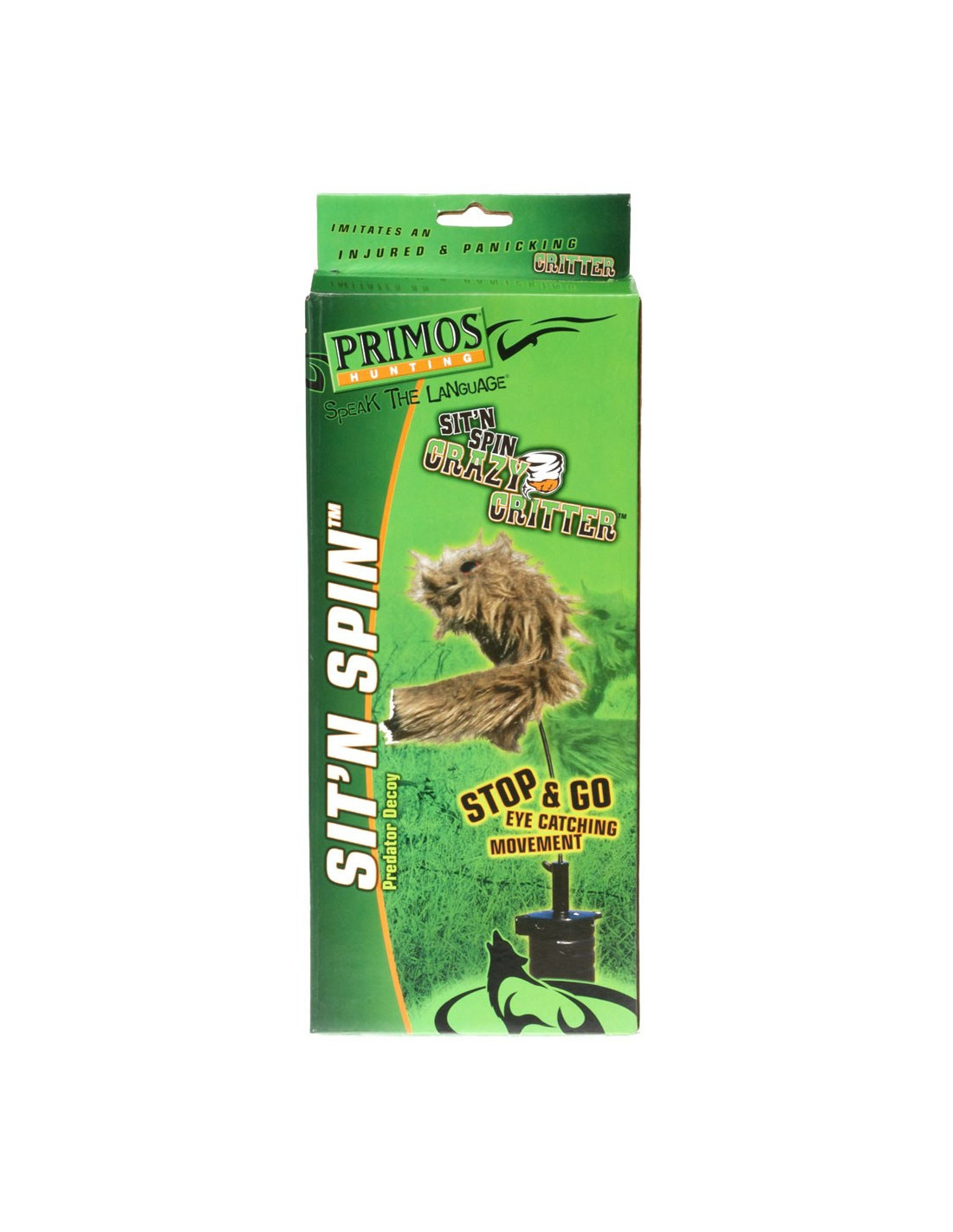 Los movimientos erráticos de «parada y marcha» del señuelo PRIMOS Sit And Spin imitan a los de un roedor o pájaro herido. El pequeño diseño plegable del Sit And Spin hace que su manejo sea muy fácil. El montaje de la estaca y el señuelo se puede desatornillar del motor y fijarlo a los clips en el lado de la carcasa del motor para facilitar su transporte.