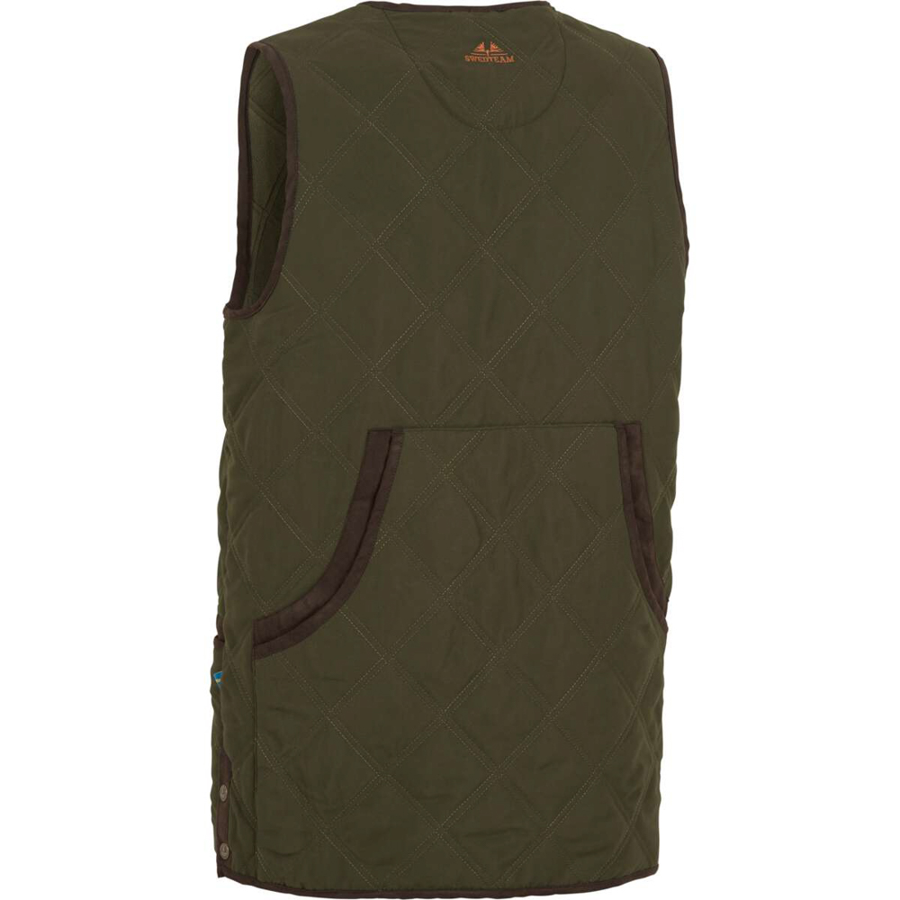 Chaleco de caza, de corte clásico, confeccionado con tejido elástico, con cálido interior de forro polar y detalles de ante en los bolsillos. Resistente al viento y con tratamiento de repelencia al agua.