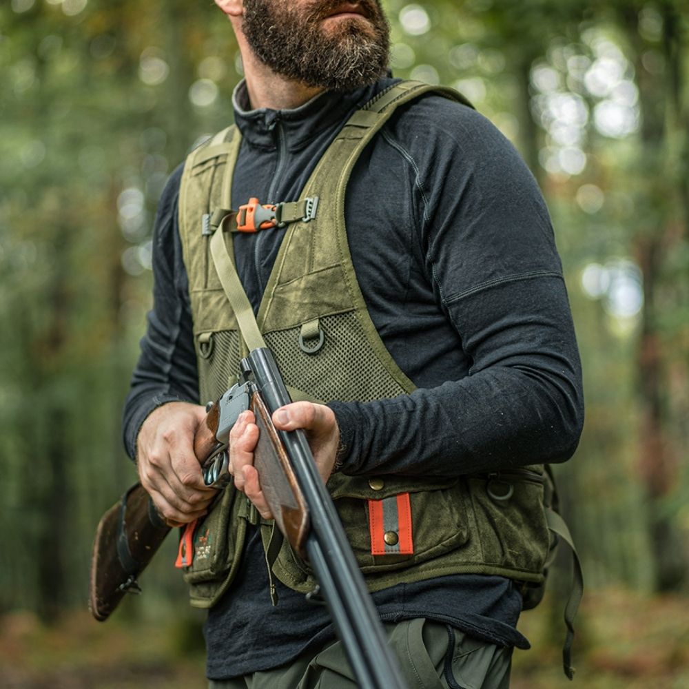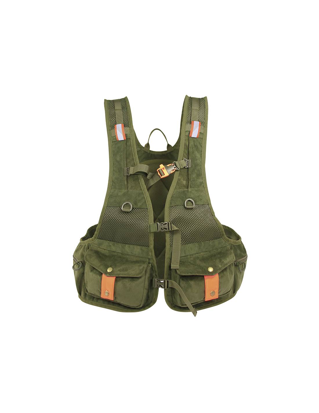 Suede Selva es el nuevo chaleco para los amantes de la caza, fabricado íntegramente en tejido SUEDE, se adapta fácilmente a cualquier talla de cuerpo gracias a las dos cintas de compresión laterales. Tiene correas de malla para los hombros con una correa de pecho deslizante con silbato y espalda acolchada transpirable. Equipado con una mochila trasera con una capacidad de 12 litros, cómoda y espaciosa con un amplio bolsillo delantero. Equipado con 4 bolsillos frontales: dos con solapa de cierre, cada uno equipado con 5 bandas elásticas y dos bolsillos laterales con cierre de cremallera. Las inserciones de alta visibilidad están incluidas y si es necesario salen de los bolsillos delanteros y del bolsillo superior de la mochila. Equipado con 2 bandas reflectantes extraíbles en los tirantes. Compatible con sistemas de hidratación. Talla única.