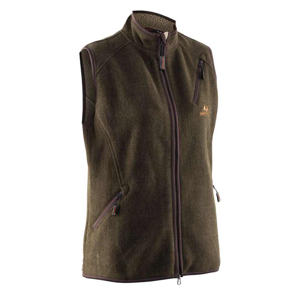 Chaleco de caza de forro polar confeccionado especialmente para las mujeres. Una prenda cálida, con forro de doble densidad, equipada con bolsillos con cremallera en el pecho y en los laterales. En color verde, su uso es muy versátil para utilizar como segunda capa para cazar con tiempo frío.