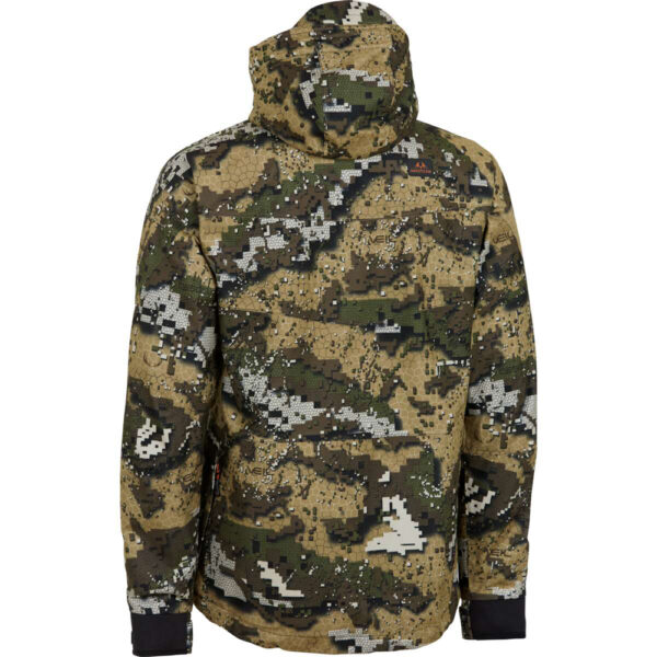 Chaqueta de caza alta gama, con la última tecnología textil para la caza, en camo Desolve Veil®. Impermeable, cortavientos y de excepcional transpirabilidad, fabricada en poliéster reciclado, especialmente indicada para zonas boscosas y terrenos abiertos.