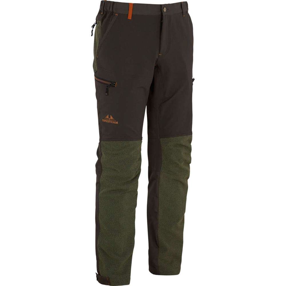 Robusto Pantalón de caza con refuerzos en la parte posterior y en las piernas.Pantalones Robustos al mismo tiempo que muy ligeros fabricados con Polyester y Algodón. La parte frontal de las piernas y la parte trasera del pantalón están reforzadas con un material muy resistente contra la abrasión y el desgarro. Cuenta con paneles elásticos distribuidos tanto en su parte delante delantera como en la zona trasera que le dotan de una gran ergonomía y comodidad. Bolsillos espaciosos. Dos bolsillos en los laterales